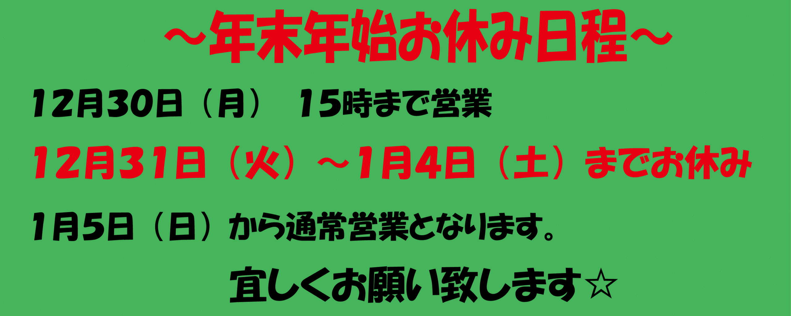 2024年年末年始営業時間 cp-loft_webmaster 2024-12-04T13:28:30+09:00 2024年12月4日 水曜日| この記事がいいね!と思った方はシェア!! FacebookTwitterGoogle+Pinterest